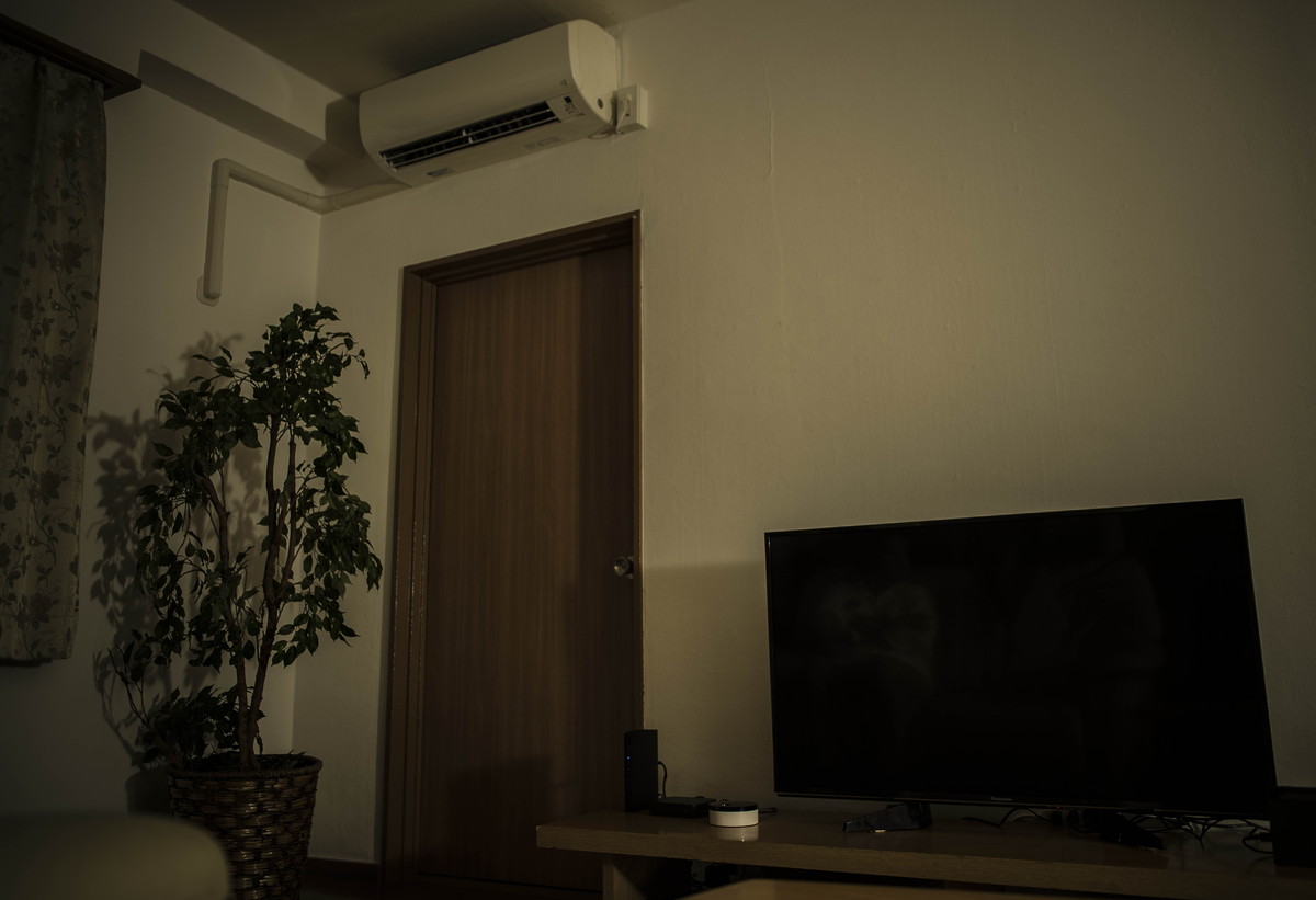 無人の部屋でエアコンが動き始める。蒸し暑かった部屋が徐々に快適な温度に。
