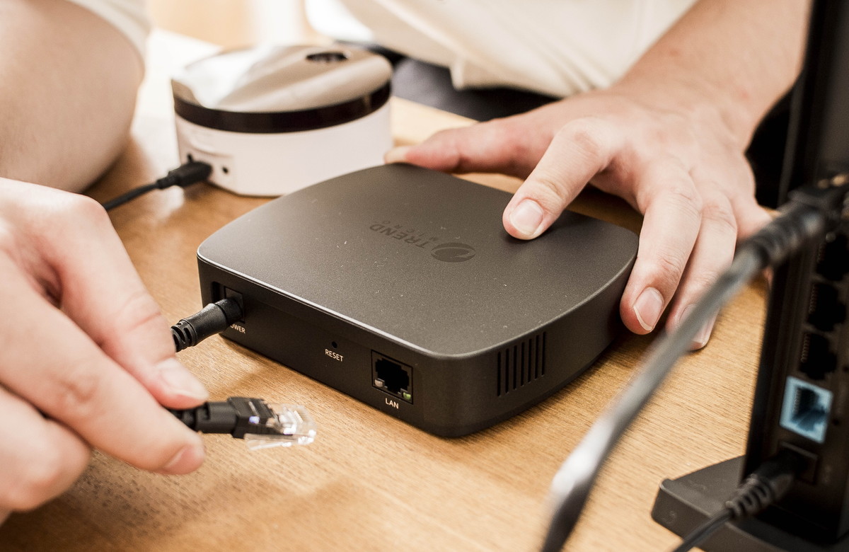 「ウイルスバスター for Home Network」があれば、ホームネットワークに接続された機器を守ってくれる。とはいえ、そこまでやってくれるということは、設置も難しいのではないかと思いがちだが、実は驚くほど簡単。自宅のルーターとケーブル1本で接続するだけなのだ。
