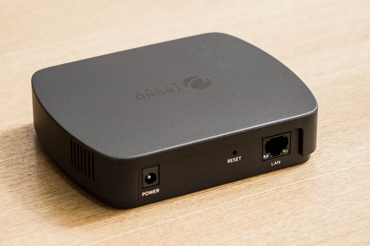 実際の機械はとにかくシンプル。電源ケーブルを挿す部分と、LANと書かれたルーターとをつなぐケーブルを挿す端子だけ。ここから付属のケーブルでルーターと接続するだけで設置完了。あとはスマホやタブレットに入れたアプリで設定するだけだ。