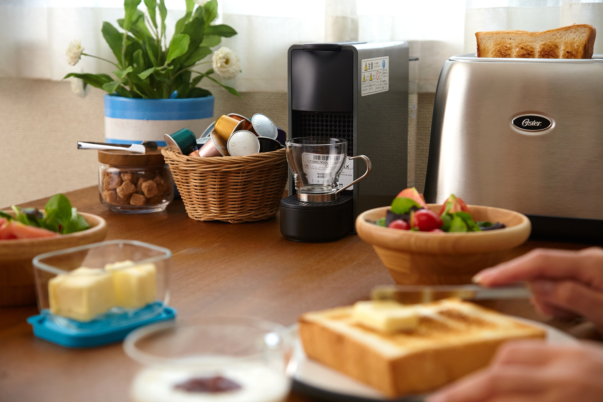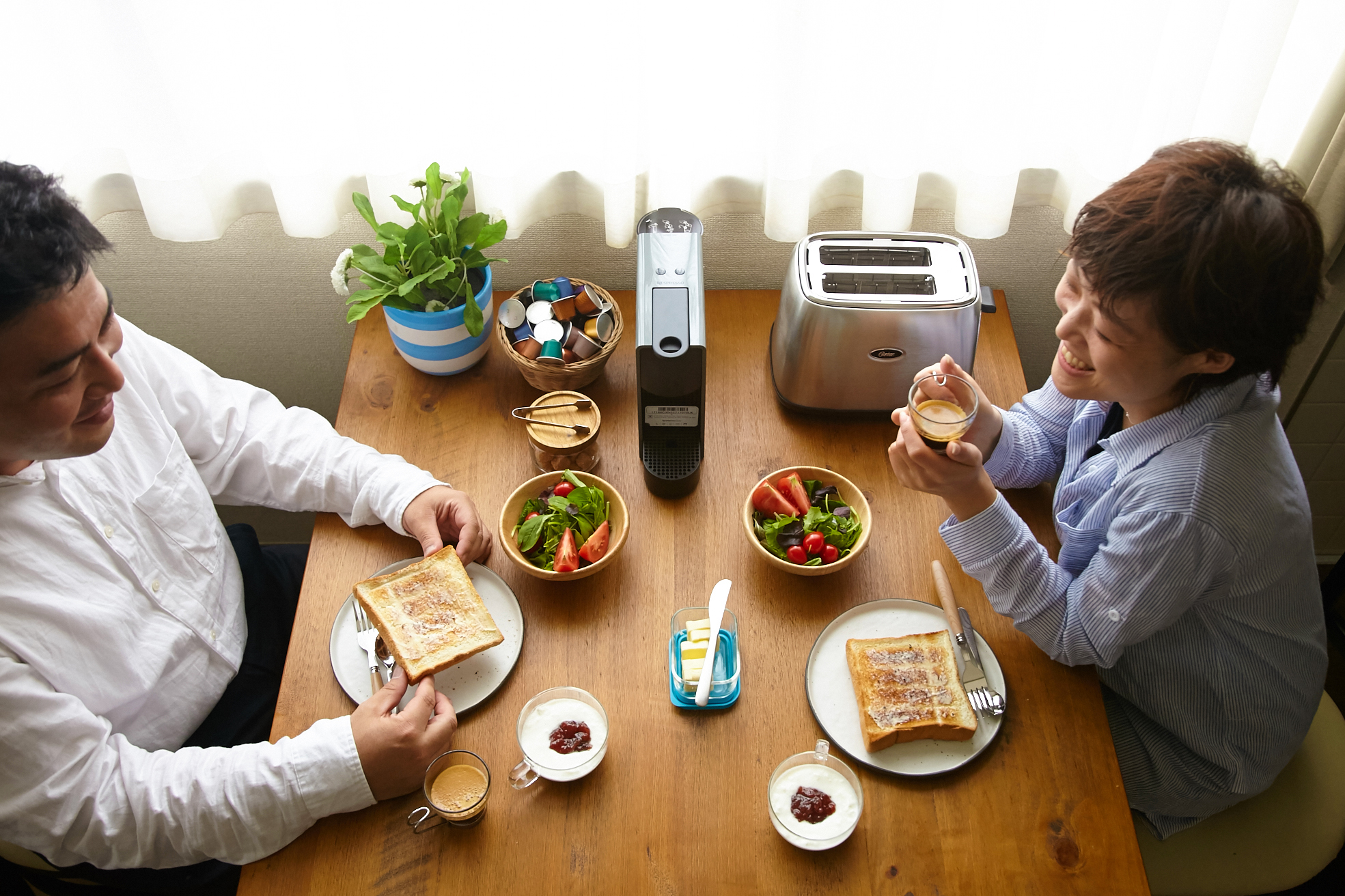 平日の朝はトーストにサラダ、ヨーグルト、そして「ネスプレッソ」のコーヒーが我が家の定番。忙しくてもすぐに用意できること。それがこのメニューになった理由だ。でもコーヒーだけはちょっとだけこだわりたい。だからとにかく小型な「エッセンサ ミニ」が発売されたとき、すぐに購入した。テーブルの上でも気にならないサイズで、気が向いたらいつでも手軽に美味しいコーヒーが飲める。朝の一杯は重要だと考えている僕らにはぴったりだ。