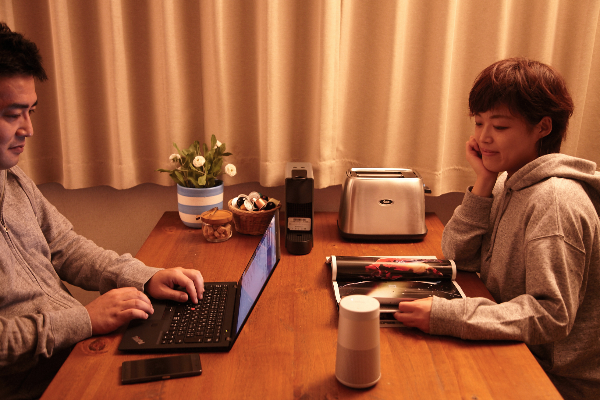 今月は彼女の好きなアーティストの米津玄師が出ているらしい。だからいつもテーブルに置いているワイヤレススピーカーからも米津玄師の曲が。お互いマイペースで、同じテーブルで別々のことをしていても全く気にならない。おまけに時々口ずさむ曲がいつも同じだから、僕まで歌えるようになってしまった。どうやら彼女、今日はご機嫌のようだ。仕事もひと段落したから、ホッとひと息。そうだ、コーヒーを作ろう! 夜も遅いから、やっぱり“ラテ”かな。
