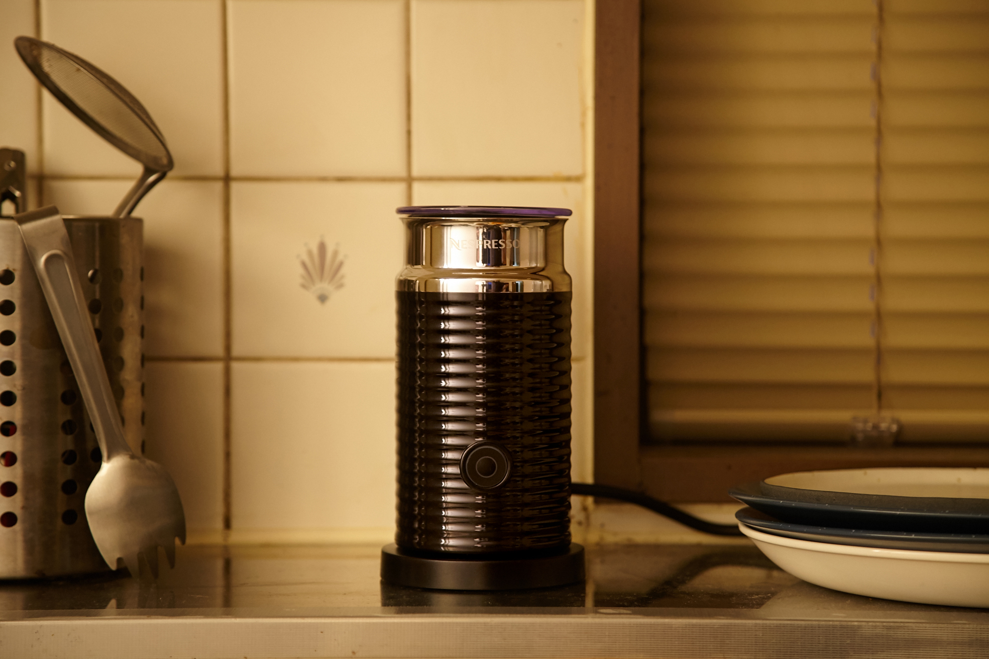 “ラテ”のために先日買ったのが、この「エアロチーノ 3」。これさえあれば、冷たいミルクを入れてボタンを押すだけで、温めも、カフェで飲むようなふわふわのフォームミルク作りもできてしまうというお気に入りだ。
