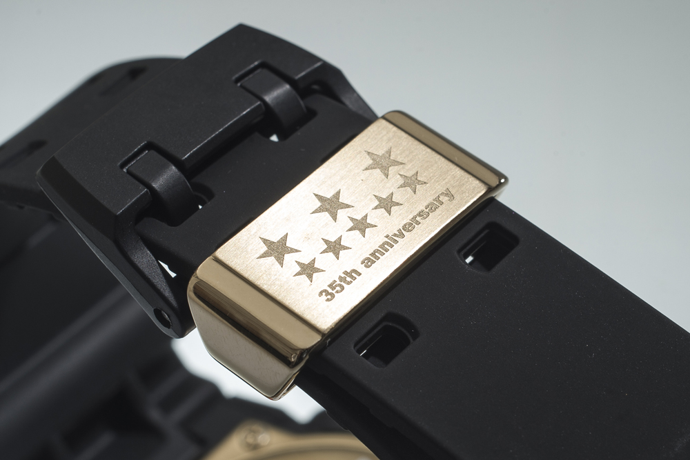 ビッグバンブラックには、ゴールドIP処理を施したケースバックにグラフィカルデザイナー、エリック・ヘイズの手による35thロゴも配されている