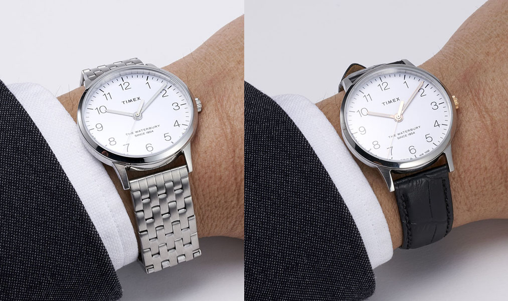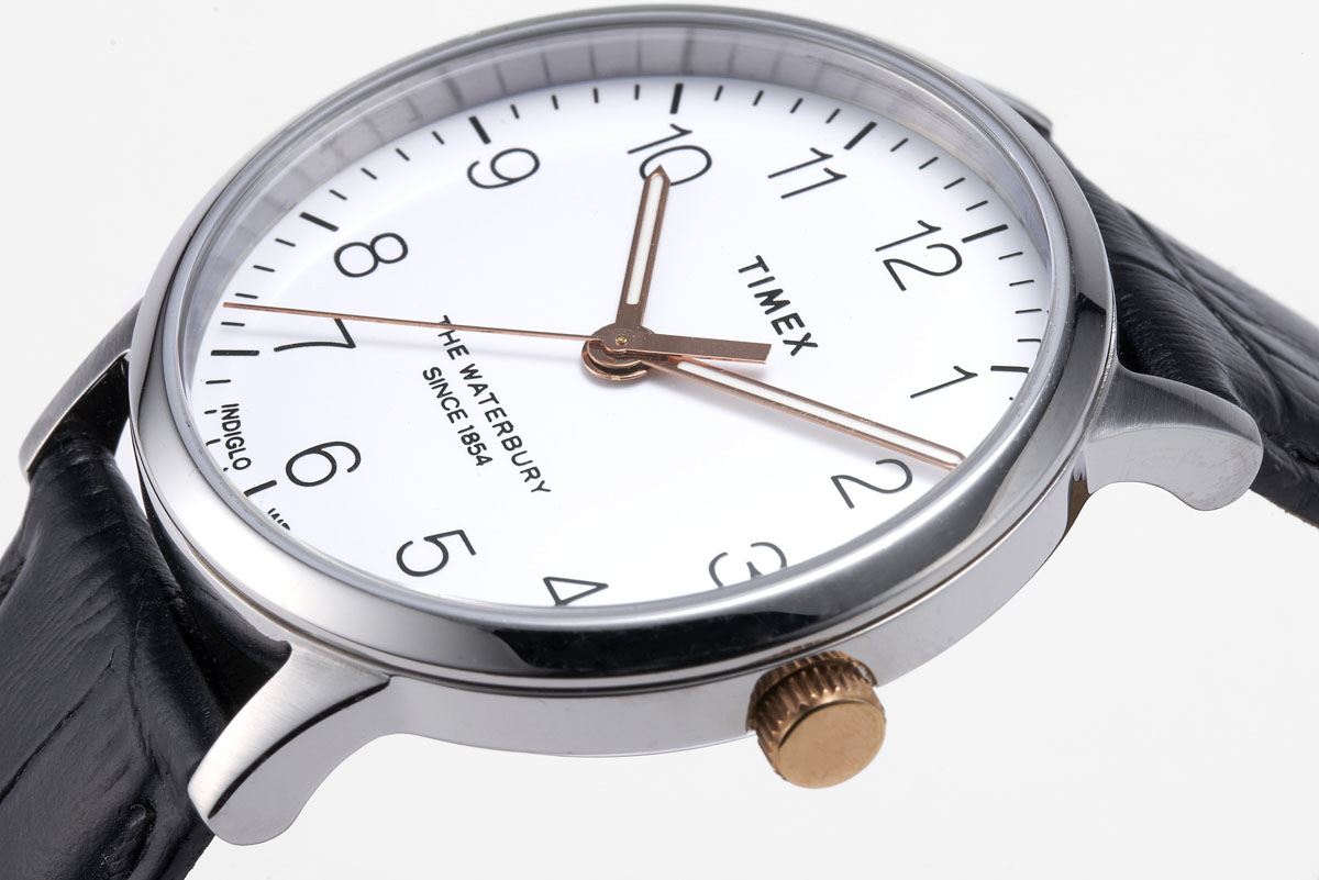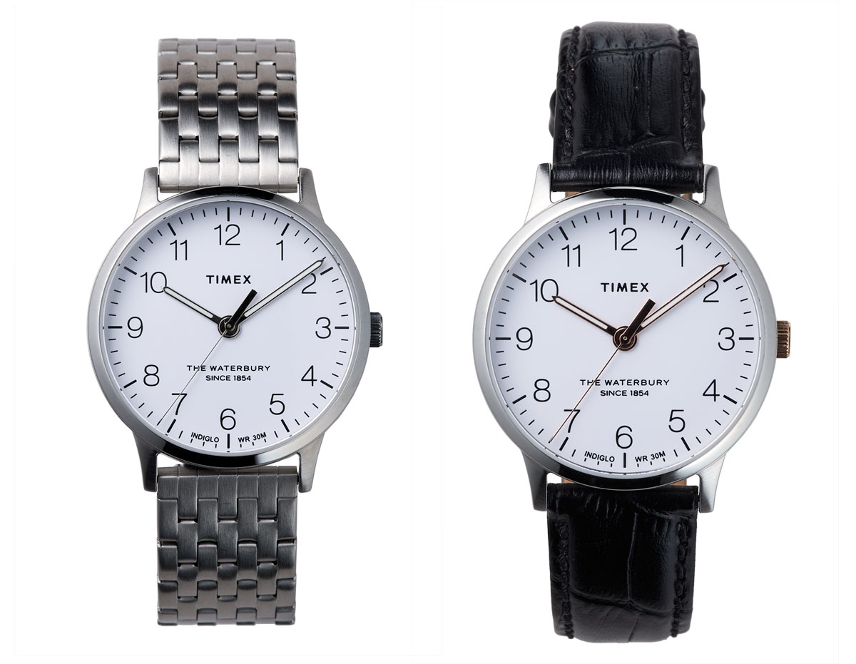 現在、時計市場ではケース径34~36mmのモデルが盛況。小径のため着けやすく、男女問わず人気が高い。そんななか、タイメックスを代表するオーセンティックモデル「ウォーターベリー クラシック」に、待望の36mm径が追加された。ミニマルなサイズ感とクラシックなデザインで、カジュアルにもビジネスにも似合うドレス顔。品のいい小径はレアなので、気分転換の1本として重宝するだろう。