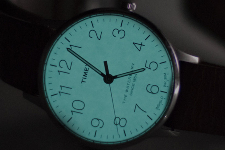 ▲文字盤全体が光るオリジナルの「インディグロ®ナイトライト」を搭載。夜間の視認性も高い