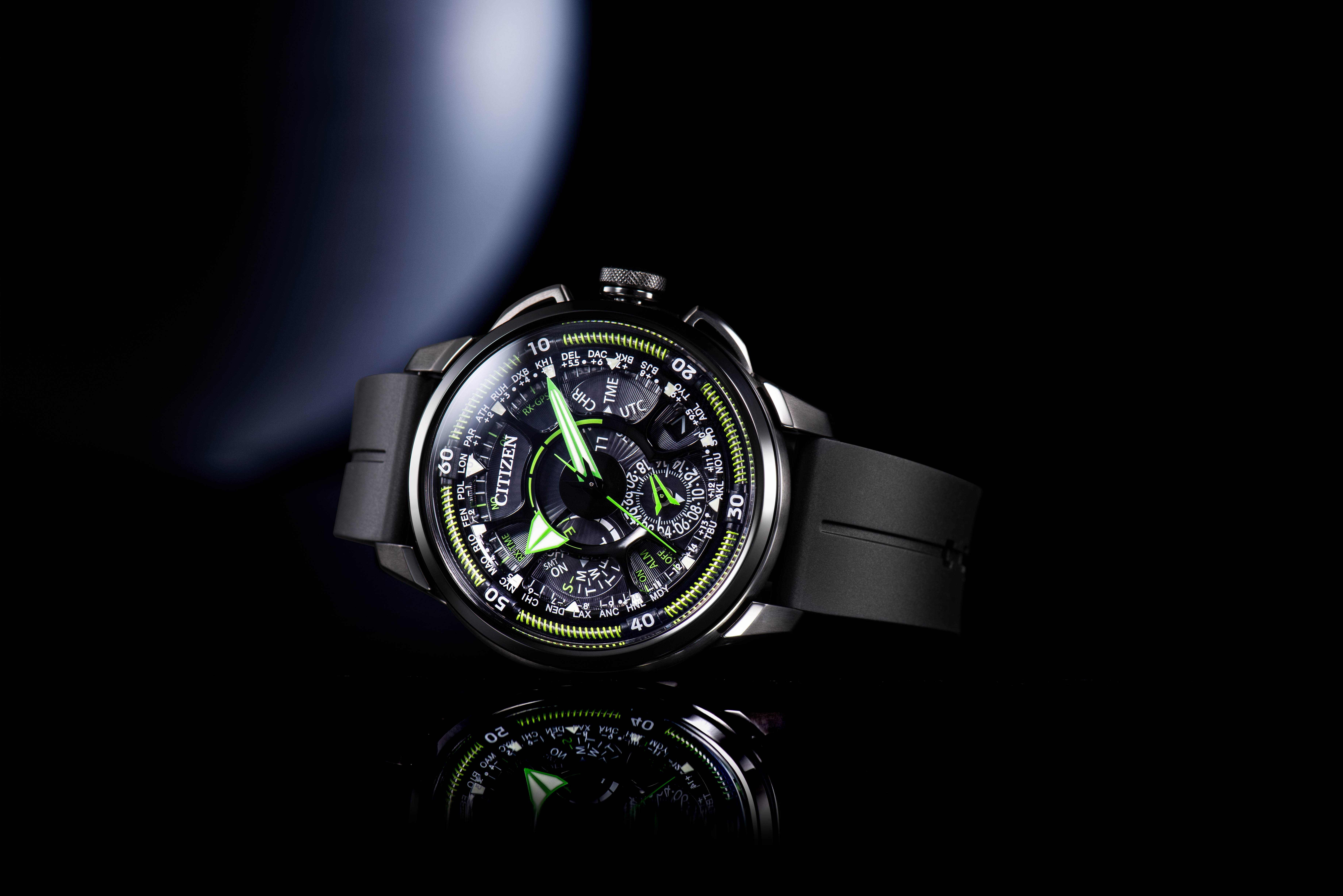 2011年に誕生し、世界限定990本が瞬く間に完売したシチズン「SATELLITE WAVE」。鮮やかなグリーンのインサートカラーと独創のフォルムが織り成すフューチャリスティックな意匠もさることながら、その魅力はやはり、人工衛星から時刻情報を受信して正確な情報を享受できるようになった世界初の革新的なシステムであろう。
