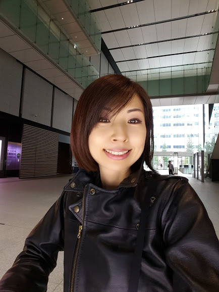 まずは手始めに自撮りしてみました。打ち合わせ帰りの夕刻に、あまり照明のないビル内で撮ったのですが、見てください、実物より(⁉︎)すごくキレイに撮れました!