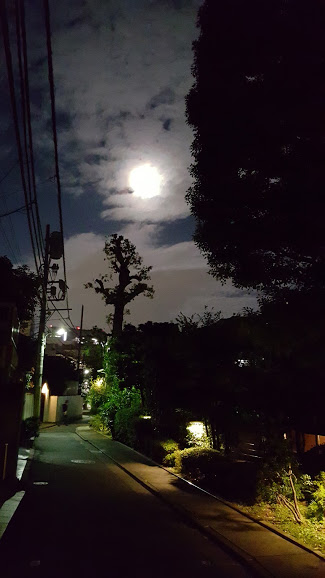 外に出るとあまりにも月がキレイだったので、急いで空に向かってスマホのカメラでシャッターを切りました。住宅街の中で街灯もほとんどない暗闇の中で、風景がちゃんと分かるほど明るく写りました。