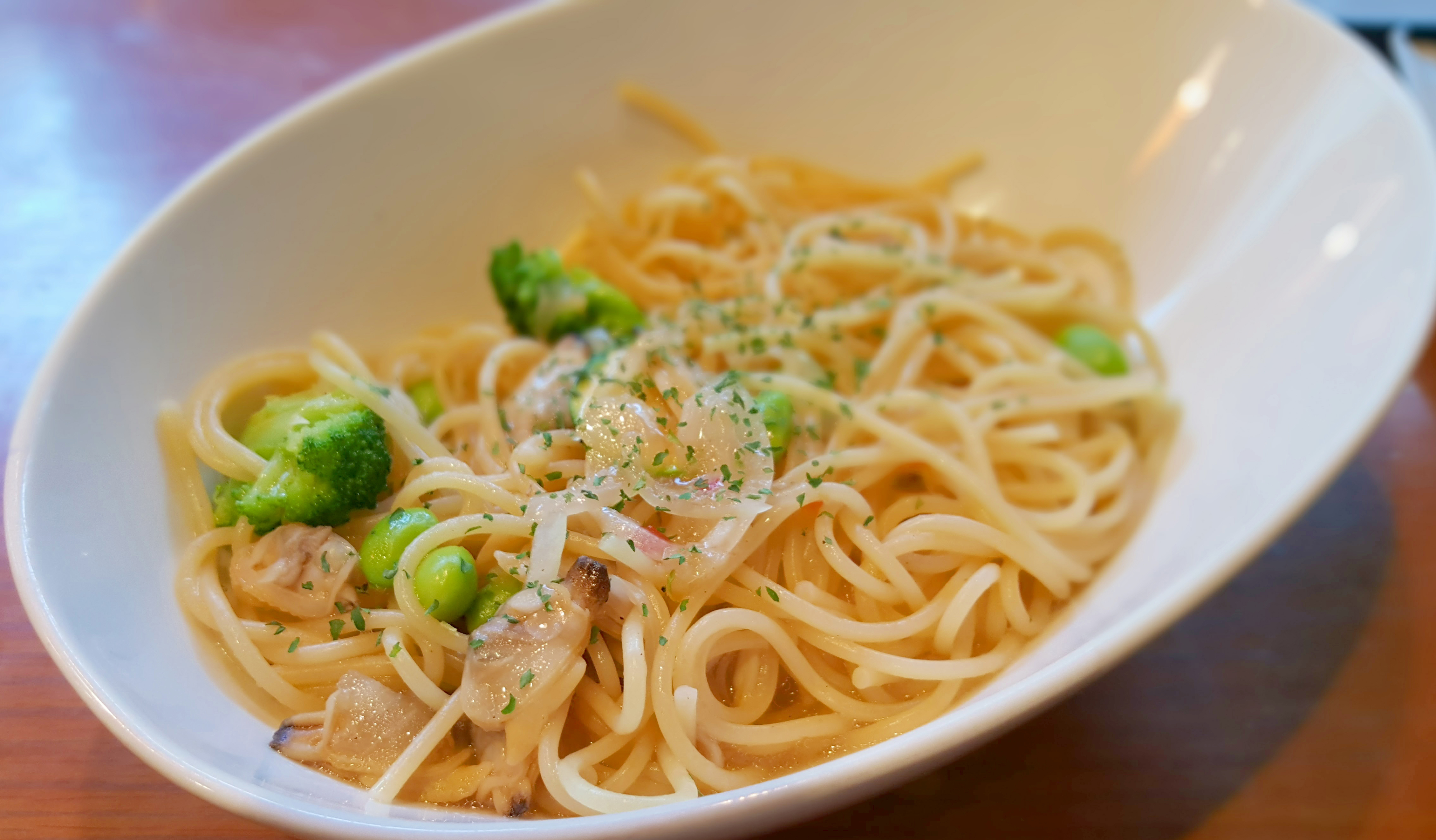 直木賞作家と芥川賞作家のトークライブに招かれ、銀座の某ラグジュアリーなビルへ。普段、あまり足を踏み入れることのない煌びやかな空間に緊張気味でしたが、トーク終了後にカフェでパスタをオーダー! それを食べて一気にゴキゲンになりました!