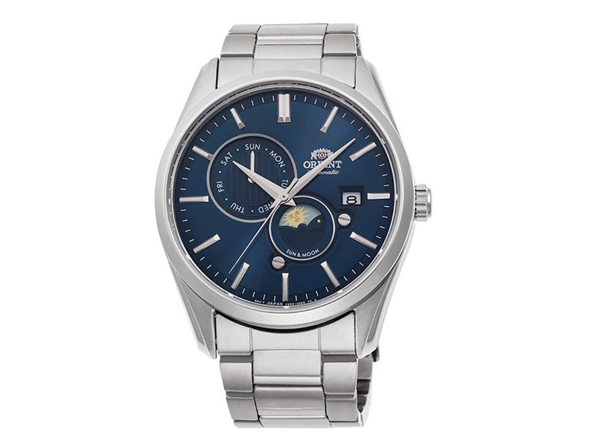 「オリエント」の象徴ともいえる“SUN&MOON”のコンテンポラリーコレクションの新デザインモデル。アーティスティックな太陽と月の図形は時間によって入れ替わり、24時間に彩りを与えます。風防にはサファイアクリスタルを採用。奥行きのある文字盤が高級感を醸し出し、ビジネスシーンやパーティでも違和感なく着用できます。5気圧防水のため、突然の雨や水しぶきにも耐えられます。