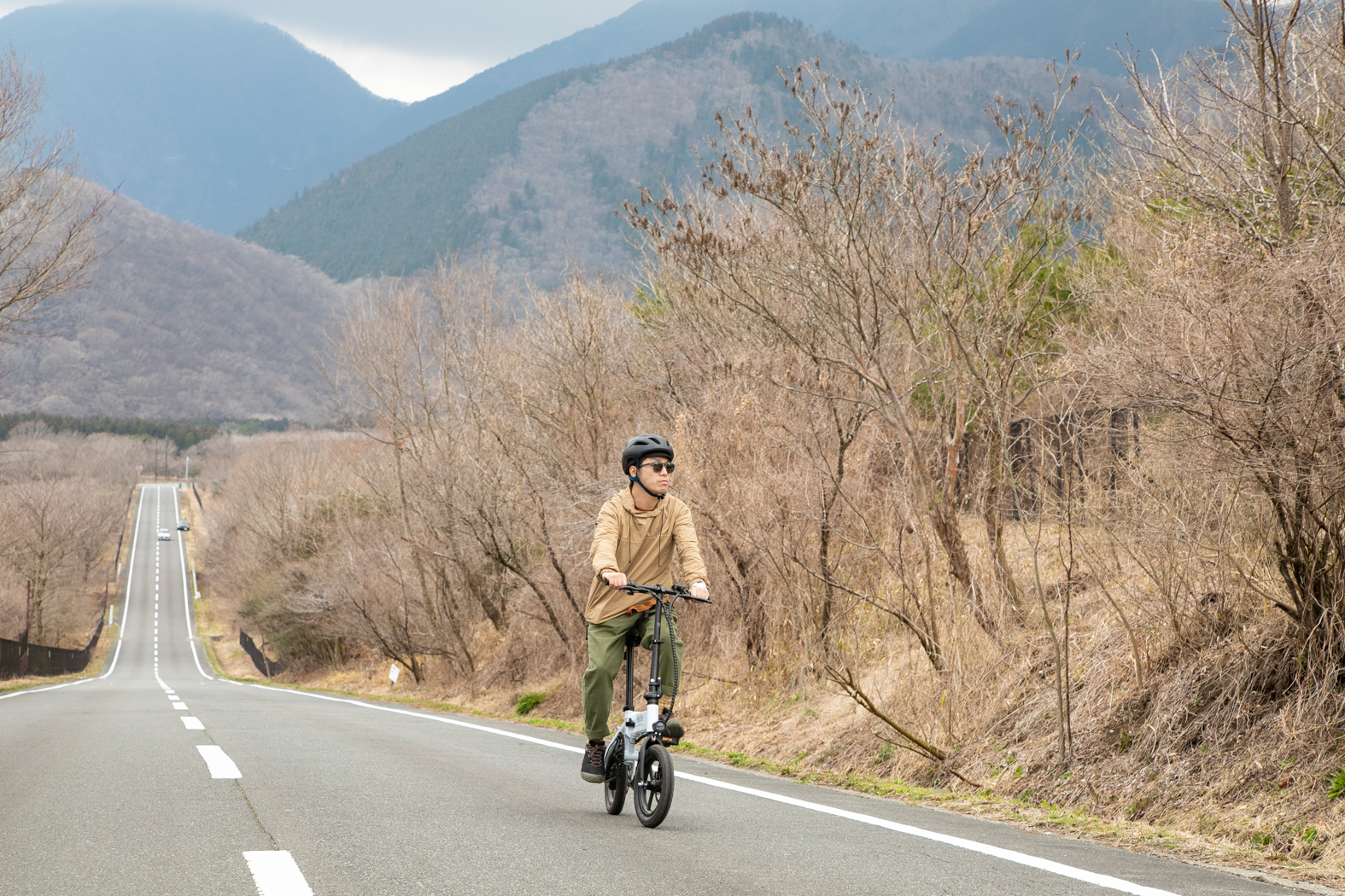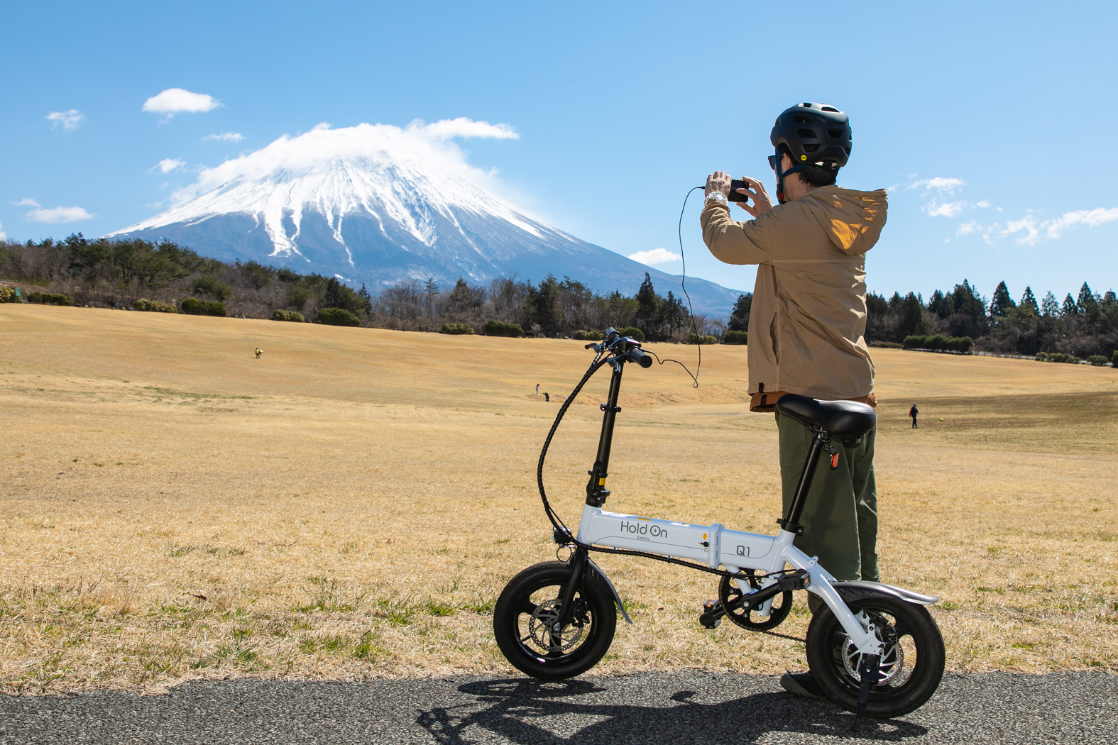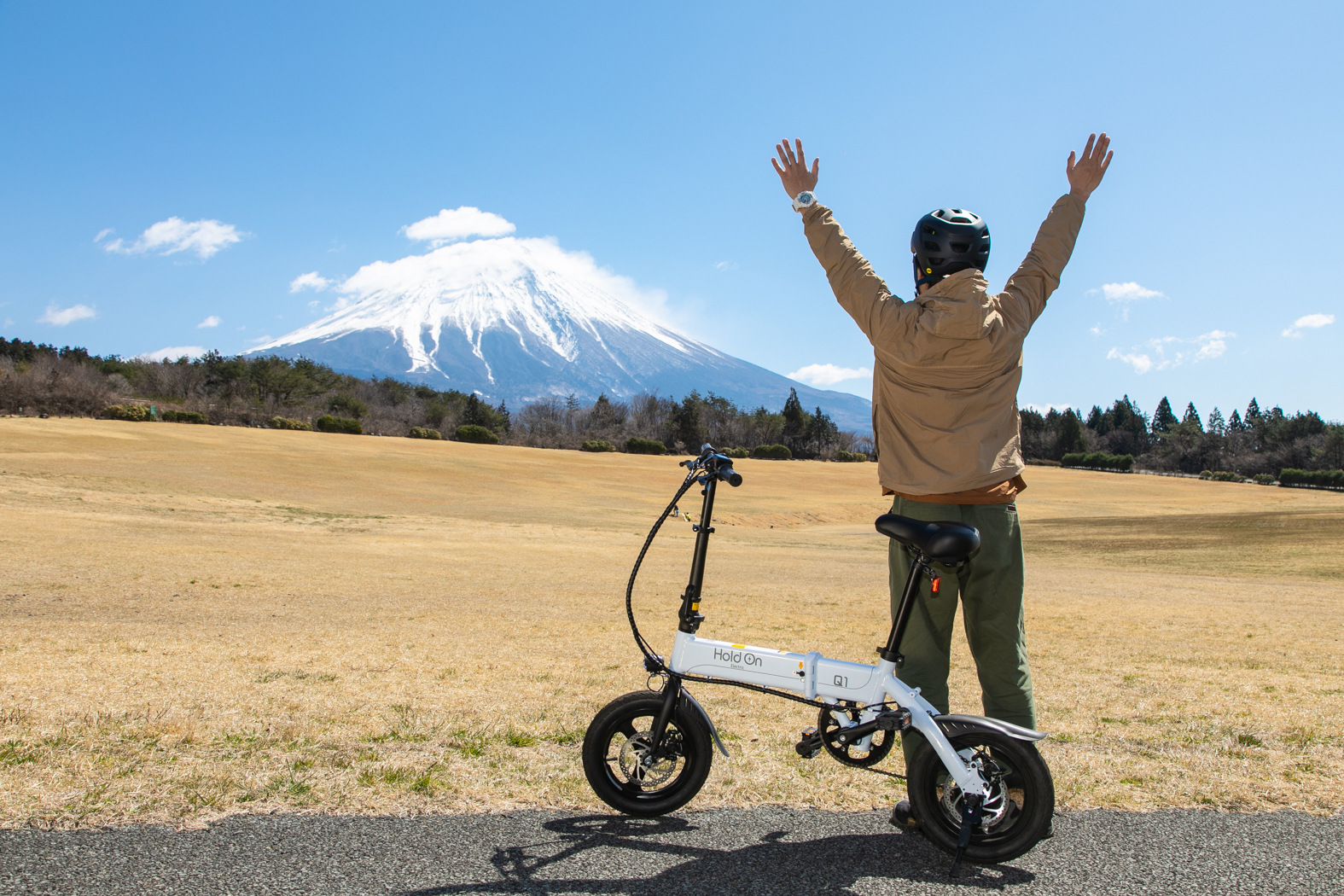 初の電動アシスト自転車はキャンプで大活躍。朝霧ジャンボリーの広大な敷地を縦横無尽に移動できたし、絶景スポットへのアクセスもラクラク。おかけで納得のいく富士山の写真も撮れたしね。トイレや水場が遠くても問題ないから、人の少ない奥のほうにテントを設営できる。まさにソロキャンプにぴったり! お気に入りのテントやコットと同じくらい、僕にとって欠かせないキャンプギアの仲間入りだね。毎日の出勤にも使えるし、これからはHold Onがオンオフ最強の相棒になってくれそうだ!