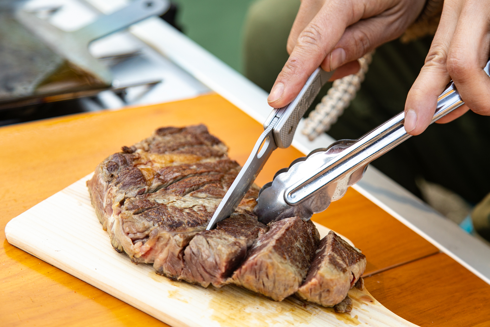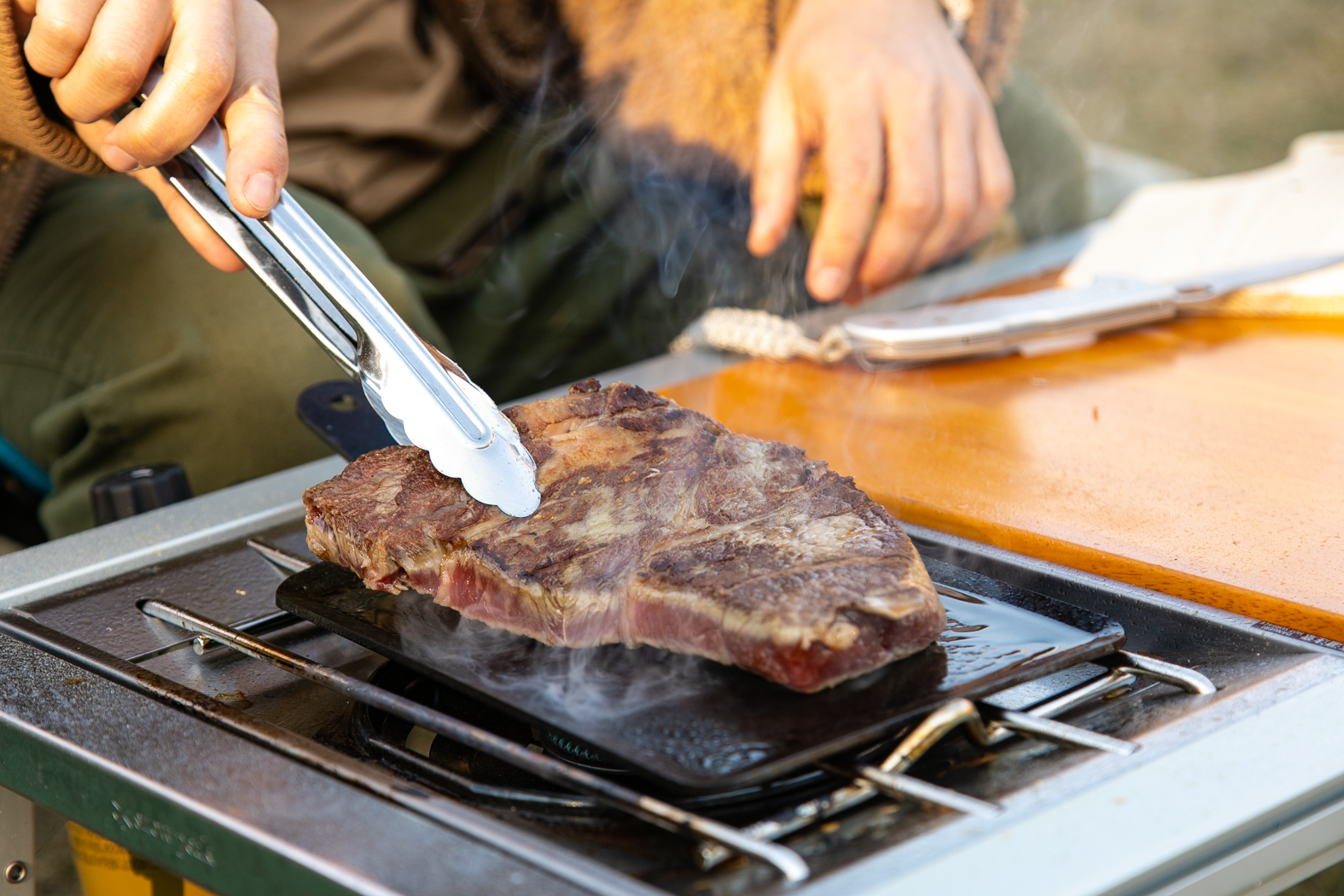 ステーキと一緒に焼いた野菜を添えて、パンと合わせれば最高のディナーになる。星空の下、焚き火を眺めながら食べるステーキはどんな高級店より美味しいんだよなぁ(しみじみ)。日常じゃ味わえない本当の贅沢ってこういうこと。ちょっとだけお酒も飲んじゃおう。