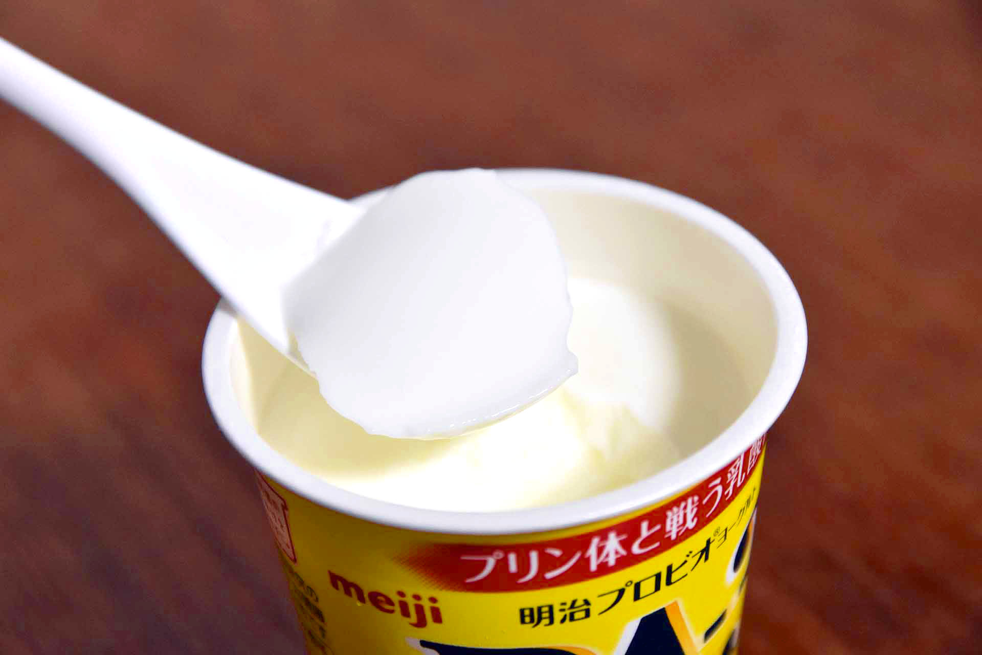まず定番の食べるタイプの「明治プロビオヨーグルトPA-3」ですが、確かに爽やかな味わいの中に、ヨーグルトらしい旨さがあります。特に「健康のために食べるもの」という感じではなく「これは美味しいヨーグルトだわ!」と楽しめます。