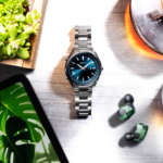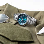 ビジネスシーンに相応しい落ち着いたデザインではあるが、もう一度よく文字盤の表情を見てほしい。メタル素材を活かした質感に、見る角度によって変化するグラデーションの美しさ。「TOKYO SORA」シリーズならではのデザイン性と遊び心である。