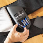 ACアダプターも付属していますが、単3形電池4本を入れれば、コードレスで使用可能。コードがないので、家のどこでも装着してリラックスできるのがポイントです。