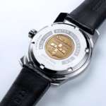 ▲裏蓋にはキングセイコーのブランドアイコンである「盾」ロゴと、イエローゴールドカラーのメダリオンがオリジナルを彷彿とさせる