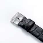 ▲ベルトには高級感あるクロコダイルを採用し、美錠はレトロかつ躍動感にあふれた「Seiko」ロゴを配しているのがポイント