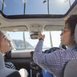 パッケージオプションの中でも気分が上がるのが、開放感抜群のパノラミックサンルーフ。フロントからリアシート頭上まで広がるガラスエリアは、昼も夜もインテリアを特別な空間にしてくれるし、前半部分は開閉可能だからフレッシュな空気を取り込める。もちろん、サンシェードがついているから、夏の強い日差しはしっかりとカットできるから快適だ。