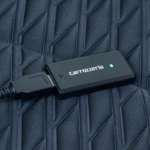 ▲本体は付属の両面テープで平らな面に貼り付けるだけ。ただし進行方向に対して垂直方向、水平方向に設置する必要がある(20度までは傾けられる)。コンパクトサイズで場所を取らずに装着できる。LEDインジケーターの色や点灯状態でインターネット接続の状態を確認可能だ