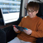 ▲Wi-Fi搭載ゲーム機も接続できる。通信が途切れることはまれで、使い心地も快適だ。映像は後席モニターにも映し出せる。(写真は停車休憩中に使用)
