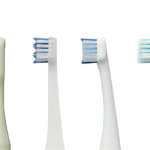 付属のブラシは目的に合わせて4種類。口の大きさに合わせて選べる、大小2種の極細毛ブラシは、歯周ポケットや歯間のケアに。クリーン&ホワイトブラシは、歯の表面や着色汚れのケアに役立ちます。ポイント磨きブラシは、歯並びの悪い箇所など、毛先が歯間に入り込みやすいため、歯間磨きに便利です。