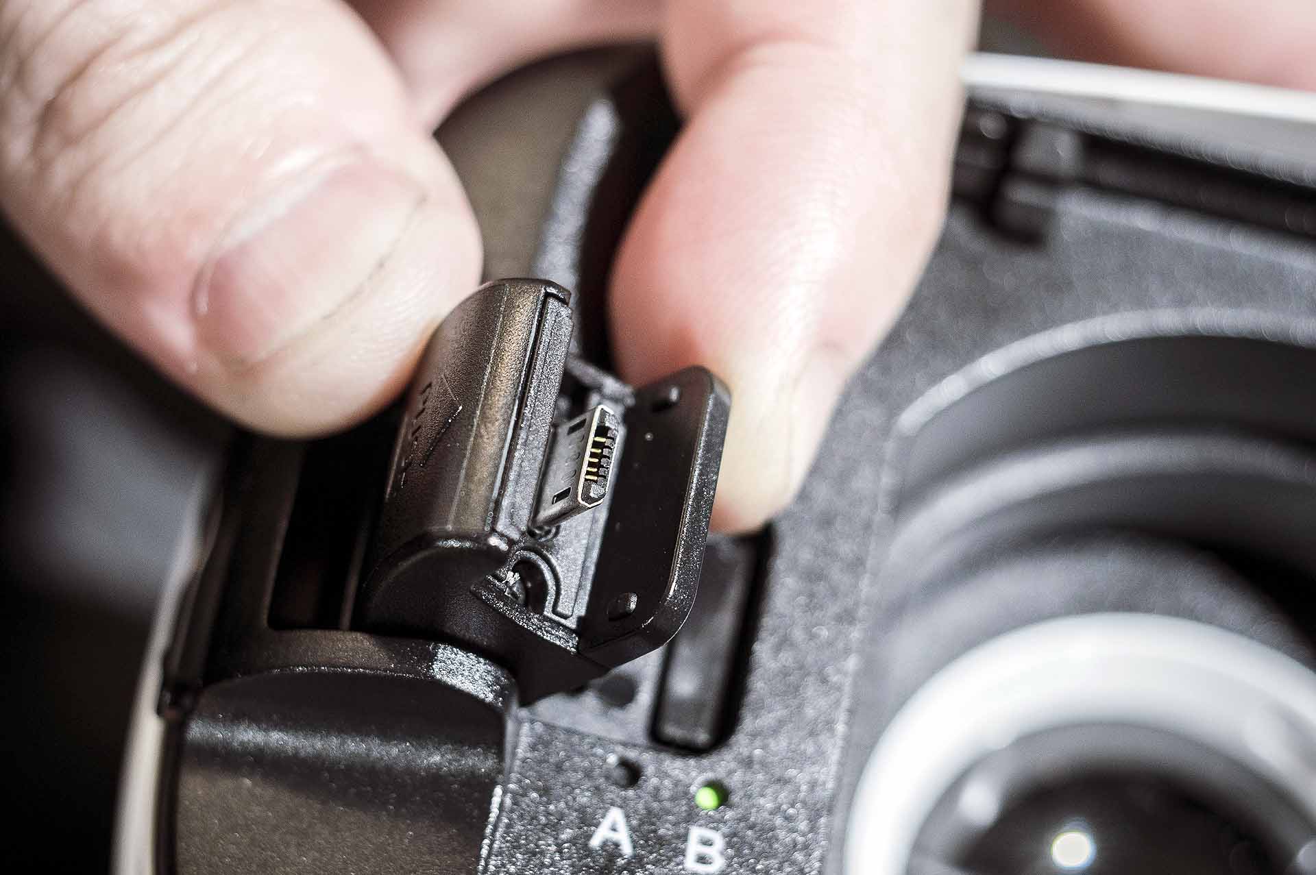 Galaxy S6 edgeをゴーグルのコネクタに挿して装着