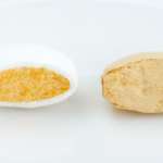 ▲コーティング層の分厚い自社他製品「アニマリンL錠」(左)と薄いコーティング層の「リポビタンDX」(写真右)。その違いは明らかだ