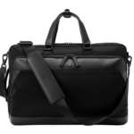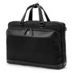 レザー、合皮、そしてナイロンの生地使い、マットブラックのメタルパーツの採用など、異素材の組み合わせが魅力的なブリーフケース。どこかアクティブな印象があり、スーツにもジャケパンにも似合う。W40×H20×D14cm