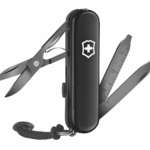 ブレードやドライバーを始め、ボールペンやLEDライトなど8機能を搭載したスイス製マルチツール。特殊加工による光沢のあるブラックのモノクローム仕上げが美しい。長さ58mm