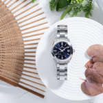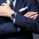 ▲王道の紺色のダイヤルは遠目からは黒にも見える深い紺色。フォーマルからカジュアルまでシーンを選ばず着用できる