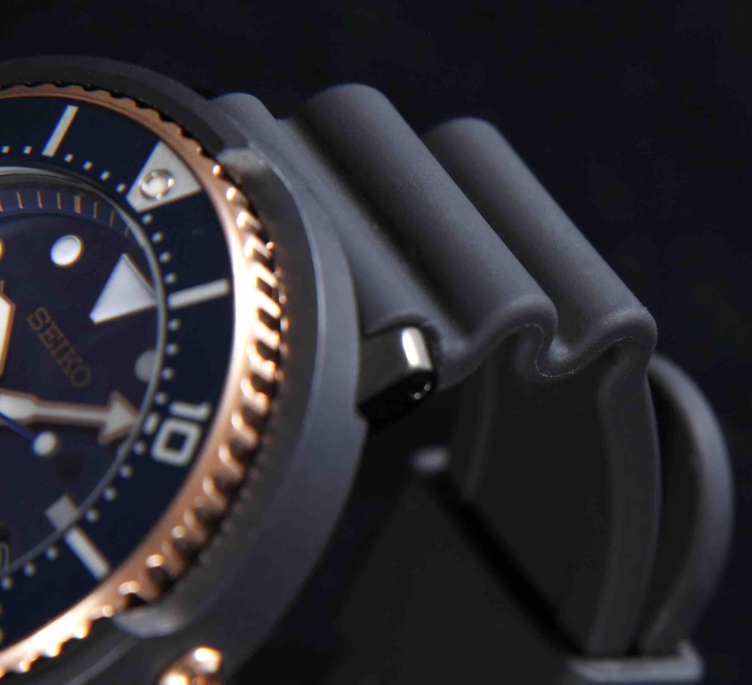 「セイコーが世界で初めて採用したジャバラ構造のシリコンバンドは、ジャバラ部分に伸縮性を持たせたことで、深海の水圧でウェットスーツが縮んでも、時計が腕から抜け落ちないように考案された構造です。フィット感もいいですし、タフで長持ちするのも魅力ですね」
