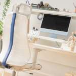 「チェアって座っていないときは背面が見えますが、ブルーのアクセントが爽やかですよね。また、しっかりしたサイズですが、背面がメッシュなので抜け感があるので、部屋に圧迫感も生じません。体、首、頭もしっかりサポートしますし、体格や動きに合せて調整できる機能も充実しているのに、価格もとても手頃ですね」と、見た目だけでなく機能にも感心したそう。