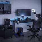 組み合わせたデスクもかなり技アリな選択だ。重厚な佇まいの「UPPSPEL/ウップスペル」は脚部分に電動昇降機能を備えておりテーブルトップの高さを72~120cmの間で調整可能。最適な姿勢でゲームを楽しむための機能だが、シーンを問わない使い勝手の良さがある。