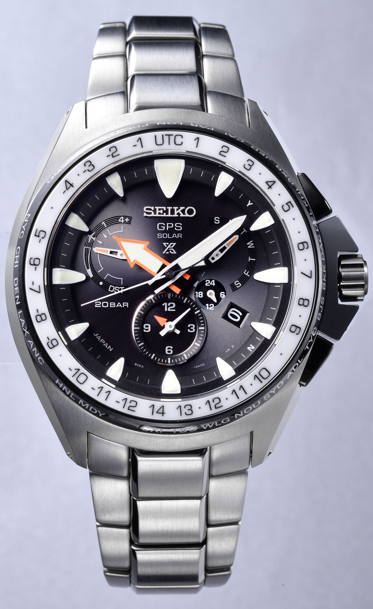 クォーツ(GPSソーラー)、Cal.8X53。チタン(ダイヤシールド)ケース/バンド、20気圧防水、ケース径48.5mm。