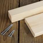 ▲使用する材料は、SPF1×4材(19×89×1820mm)3本、SPF2×2材(38×38×1820mm)1本、ビス(38mm、45mm)です