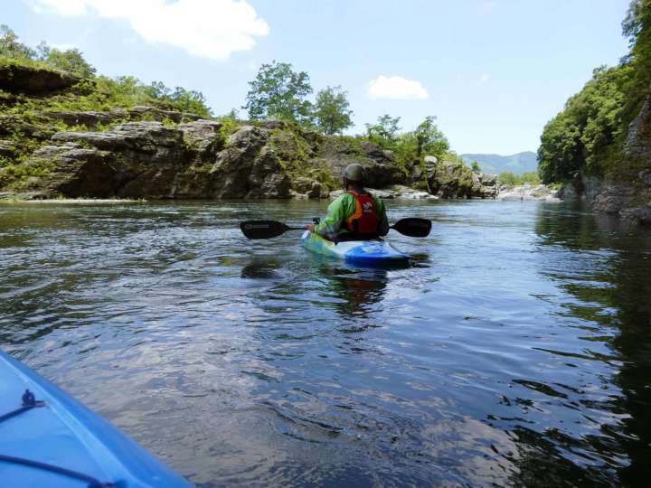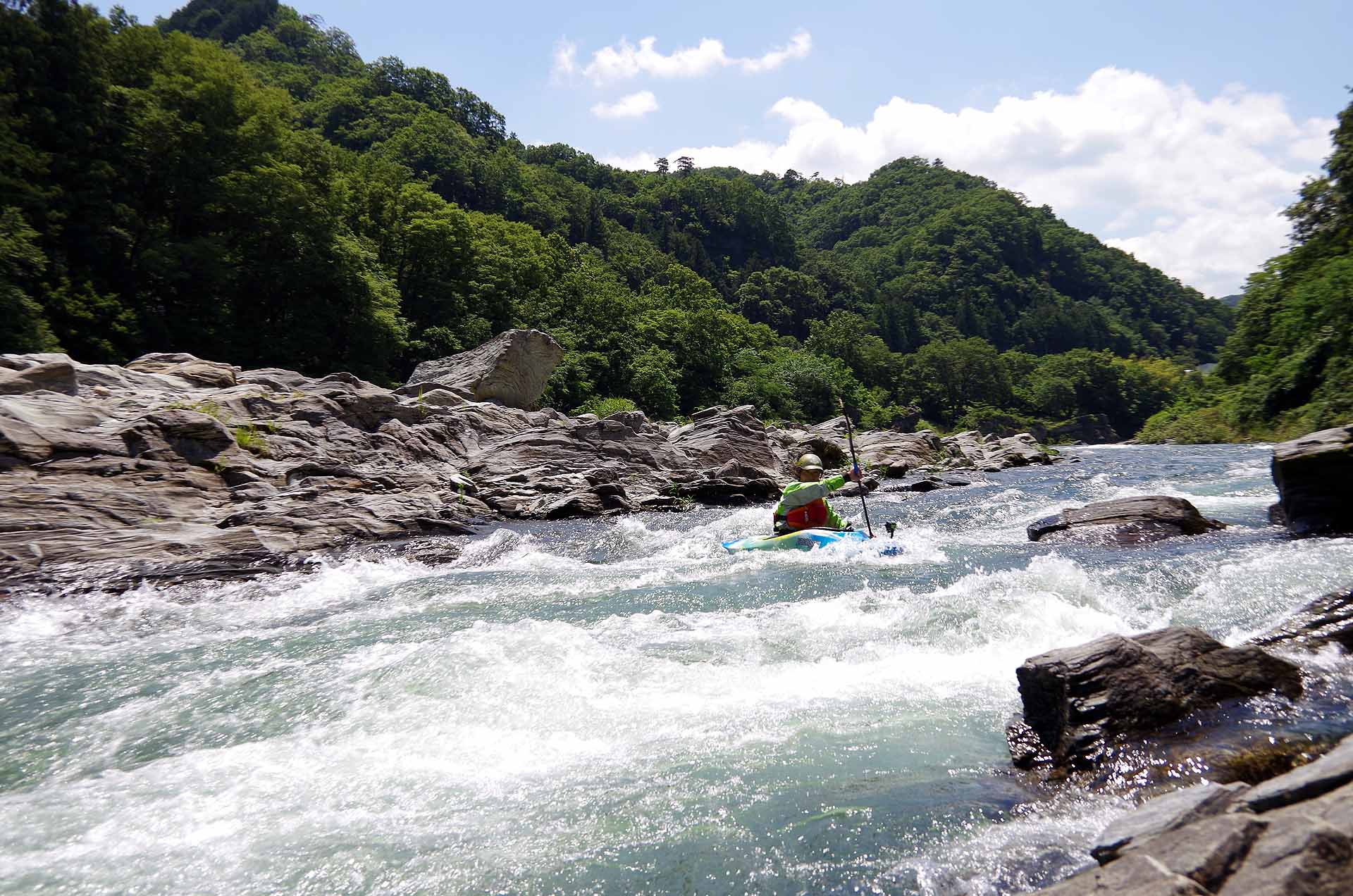 動画で感じてもらえたと思うが、リバーカヤック体験では、流れの緩やかな場所で渓谷ならではの優雅な自然を満喫し、急流ポイントでは迫力ある体験ができる。