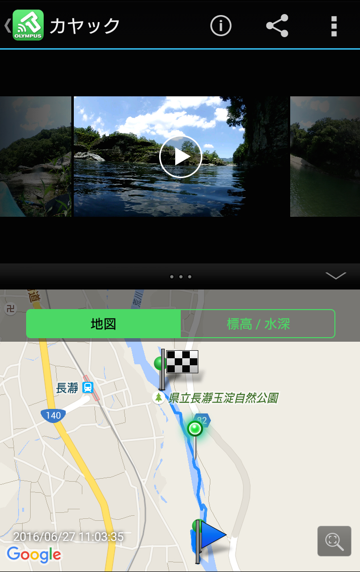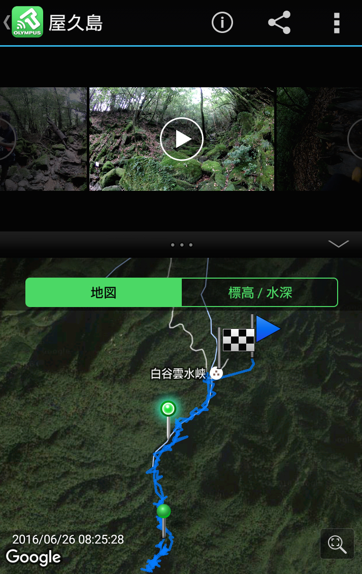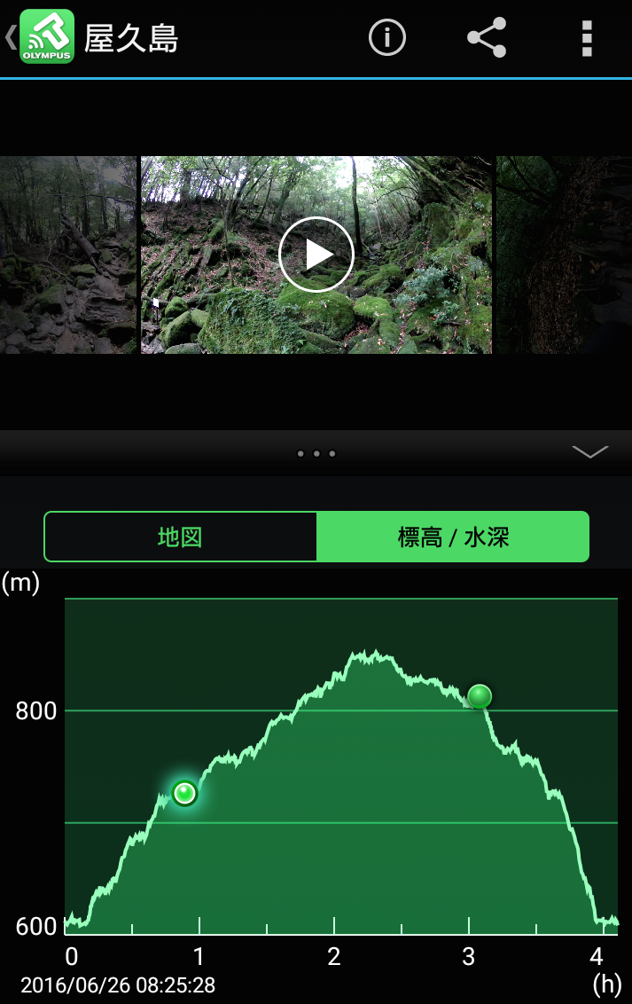 映像といっしょに標高(高低差)や時間が確認できるので、何ともいえない達成感を感じられる