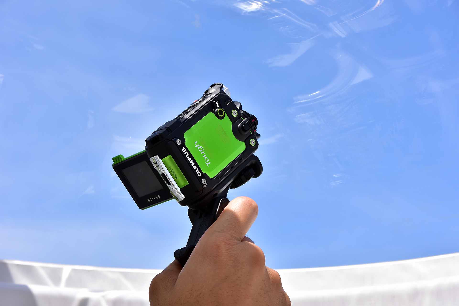 TG-Trackerは、ここでも威力を発揮。防水プロテクターなしで水深30mの防水性能、そのうえ、万が一に備えて必須となる耐衝撃性能も備えている。地上2.1mからの落下にも耐えるタフさは、まさにリバーカヤックなどのアクティブスポーツに最適だ。