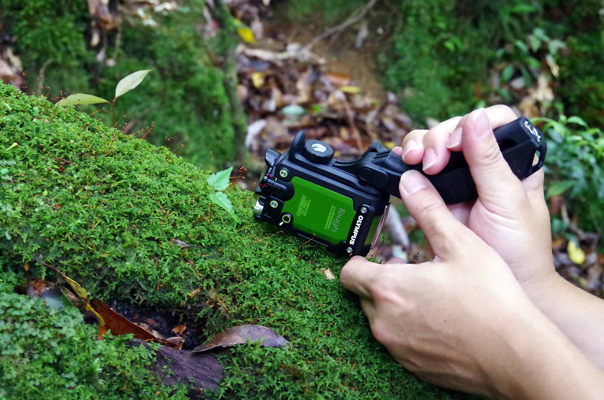 水の豊かな屋久島には、渓流はもちろん小さな水場をそこかしこに見つける。TG-Trackerなら、カメラを逆さに持ち直して、水面ギリギリに、もしくは水中にカメラを浸して清流を撮るなんてことも可能だ。こうした一般的なスマホやカメラでは撮れないシーンを何気なく撮れるから、旅の後に屋久島で見たものをよりリアルに思い出せるのだ。