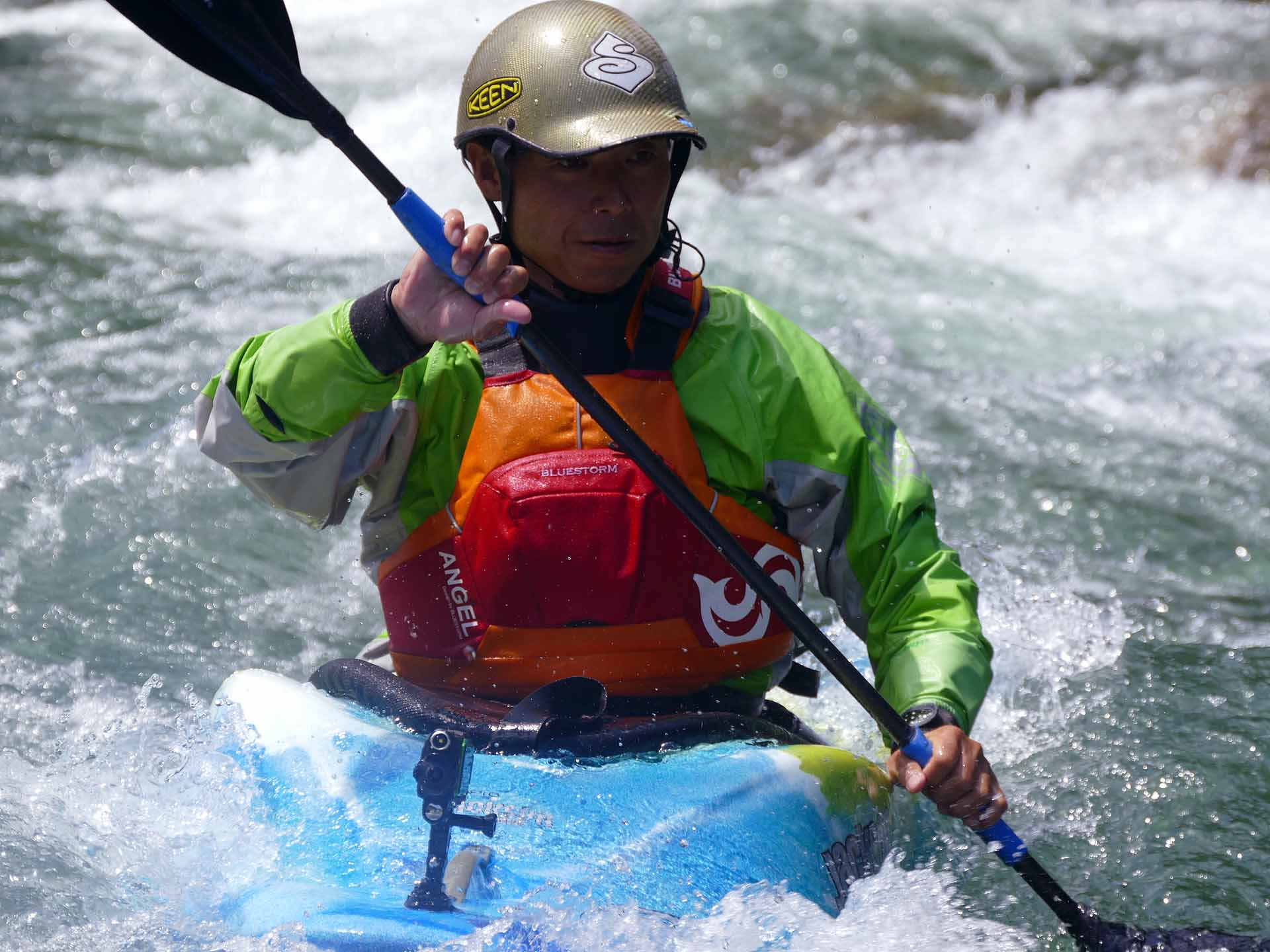リバーカヤックをレクチャーしてくれたのは小倉陽一さん。フリースタイルカヤックの世界大会にも出場する、日本を代表するカヤッカー。埼玉県の秩父(長瀞)をベースとした、カヤックスクール「ブループラネットカヤックス」の代表を務める