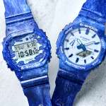 ▲左:G-SHOCK「CHINA BLUE DW-5600BWP-2JR」(1万6500円)、ケースサイズH48.9×W42.8×D13.4mm、重さ62g、20気圧防水 右:G-SHOCK「」CHINA BLUE GA-2100BWP-2AJR(1万9250円)、ケースサイズH48.5×W45.4×D11.8mm、重さ57g、20気圧防水
