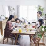 上から、朝食時、夕方の団らん、夜のシーンで、すべて「ライフコンディショニングシリーズ」が付けられた同じ部屋のものになります。