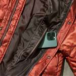 日常生活において重要なのが、収納と防寒の両方を兼ねるポケットの存在。本作では、使いやすさを考慮してファスナーを長めに設計し、長財布やスマホに名刺入れなど、出し入れの多いアイテムがしっかりと収まるようにデザインされています。