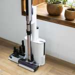 ▲掃除機をドックに戻すと自動でゴミが収集される。たまったドック側のゴミ捨ては直接ゴミに触れる工程がなく衛生的