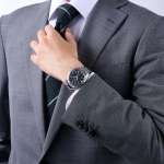 ともすると地味になりがちなグレー系のスーツだが、「SBGN027」なら、GMT針や24時間表示のベゼルがアクセントを効かせつつ、ブラックダイヤルが全体の印象を精悍に引き締めてくれる。