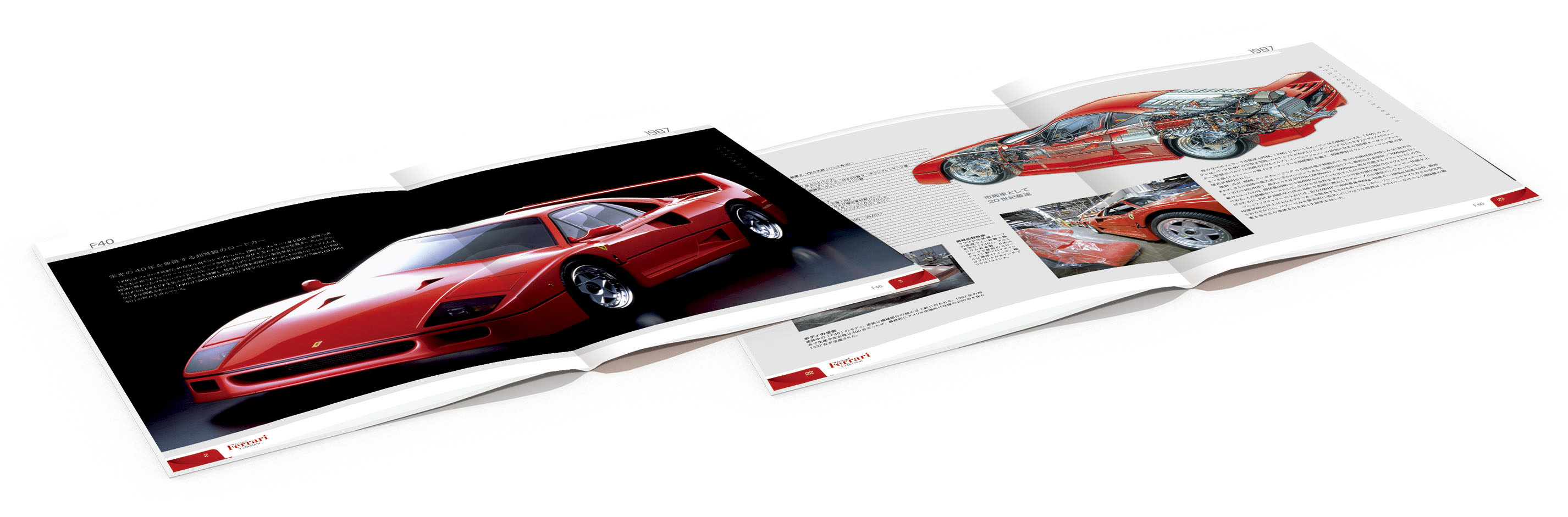 記念すべき創刊号には、フェラーリ創立40周年を記念して製造された伝説のロードカー「F40」が選ばれたと聞けば、今後の展開や内容が気になるという人も多いはず。まずはシリーズが秘めたコダワリの数々、その紹介からスタートしよう。