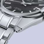 ガラス縁上面とケース面にはセイコースタイル伝統のザラツ研磨で歪みのない鏡面に磨き上げ、バンドには繊細なヘアライン仕上げを施している。加工が非常に難しい素材にも関わらず、仕上げにもこだわる技術力の高さは、グランドセイコーならではといえるだろう。