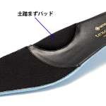 ▲履き口に柔らかなパッドを備え、足当たりが優しい。履き口はサイドゴア付きで脱ぎ履きもスムーズに行える。また、かかとが当たる部分は滑り止め仕様のため、靴内で足がブレにくい