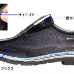 ▲優れた防水透湿性を誇る「ゴアテックスメンブレン」を足元全体に内蔵。深さ4cmの水にも耐えられる。雨水は通さず、汗の水蒸気は外に逃がすため、靴の中は常にドライで快適!