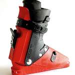 このブーツはリアエントリー式(後ろ側が大きく開く)を初めて採用。リアエントリー式はその後、スキーブーツの常識となっていきます。